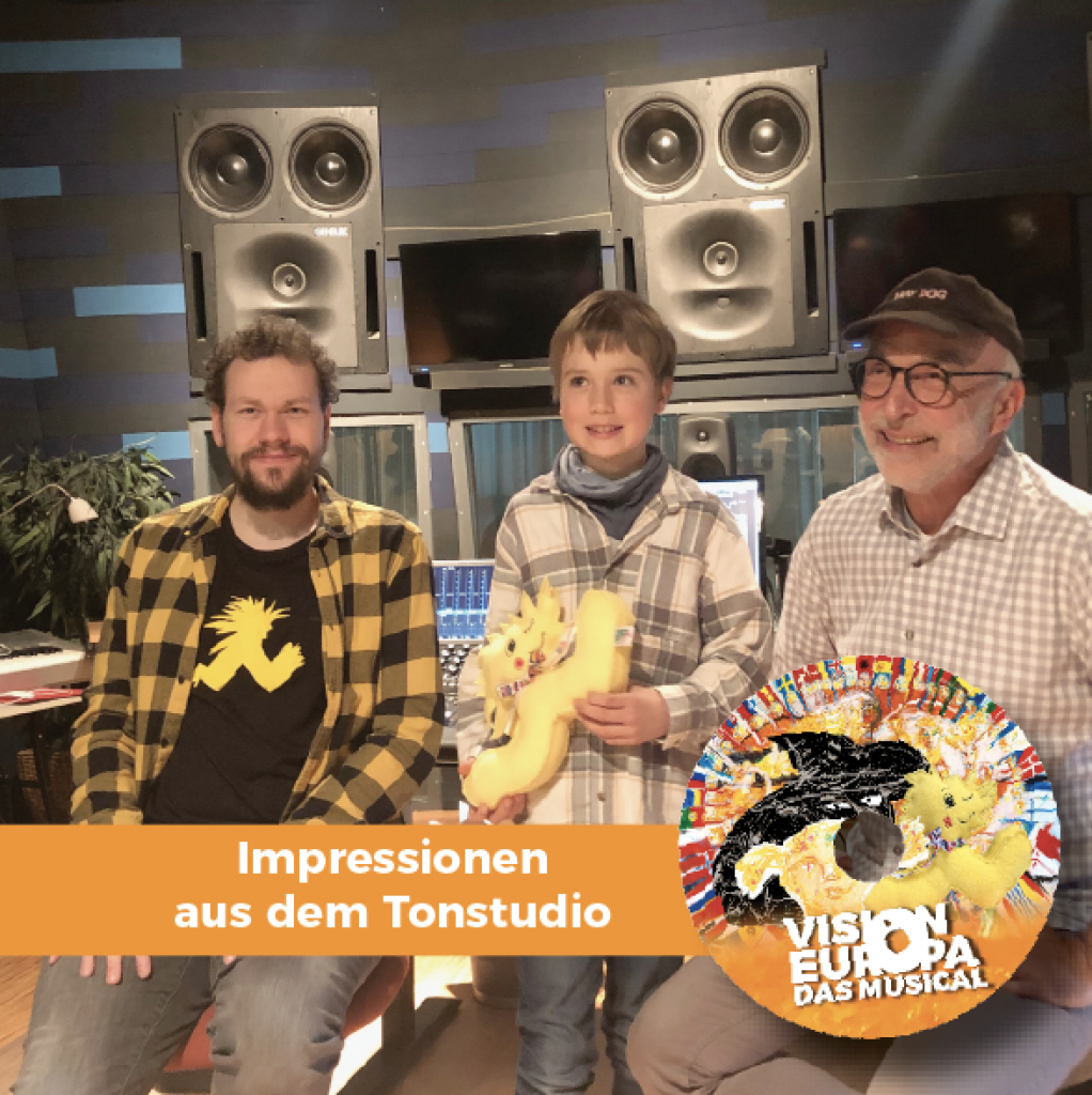 Alle Neuigkeiten Voller Spannung fiebern wir den Aufnahmen im Mainzer Tonstudio entgegen. Herzlichen Dank an unseren Vision-Europa-Komponisten TRISTAN BLASKOWITZ für die umfangreiche Vorbereitung und Organisation! Zuerst wird die komponierte Musik bearbeitet und gemischt. Danach werden die Stimmen der Sprecher und der Chor im Tonstudio aufgenommen. Zum Schluß wird alles zusammengefügt . Das jeder Ton »sitzt«, dafür ist Tonmeister Alfred verantwortlich, der auch der Hausherr im spannenden Tonstudio im »Medienhaus Mainz« ist. VIEL SPASS allen Beteiligten und vor allem den Kindern! Folgen Sie uns auf Facebook und Instagram. Aktuelle Beiträge Video Mit dem Laden des Videos akzeptieren Sie die Datenschutzerklärung von YouTube.Mehr erfahren Video laden YouTube immer entsperren Social Media Facebook Youtube Instagram Linkedin