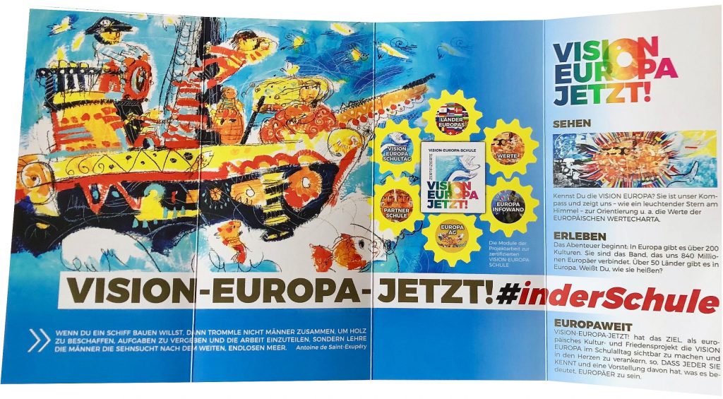 Er ist bunt und steckt voller Energie – genauso wie das größte Kultur- und Friedensprojekt VISION-ERUOPA-JETZT! …. und jetzt #inderSchule.